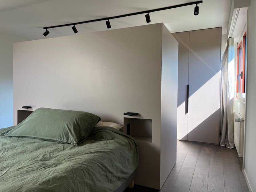 This project involved completely redesigning the space and modernizing the entire apartment. The master bedroom was enlarged by utilizing an unused space under the sloping roof, creating a new, comfortable and bright space. The kitchen was opened up to the dining room to create a welcoming living space bathed in light. All electrical, plumbing, and sanitary installations were brought up to standard, bringing comfort, safety, and modernity to this completely renovated interior.